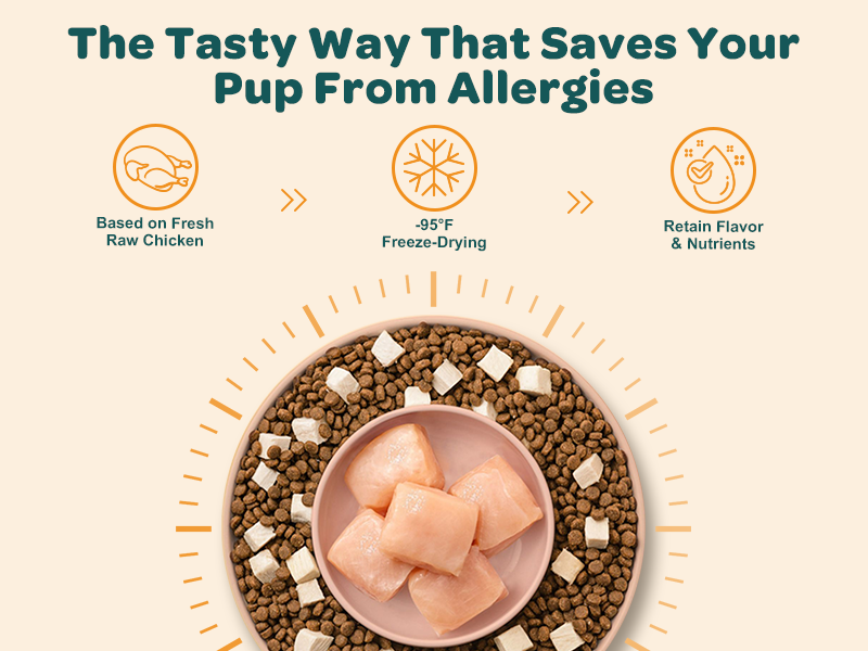 Our freeze-dried chews are made from real chicken, making them irresistible to picky eaters. The freeze-drying process removes moisture, preserving the activity, stability, nutrients, and flavor of the ingredients. Free from artificial additives, fillers, wheat, corn, soy, gluten, and non-GMO, these chews are vet-recommended for allergy relief. They're ready to serve and super convenient—simply feed them to your pet!