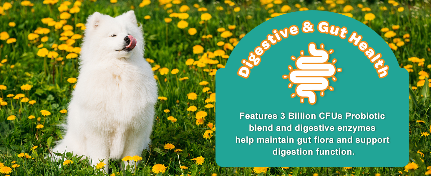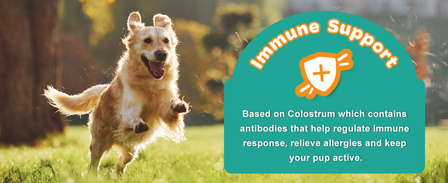 Fortified with Colostrum, 3 billion probiotics, and digestive enzymes, these chews help build a healthy immune system. Probiotics and enzymes improve digestive health, balance gut flora, and increase your dog's immunity, making them more resistant to allergens. The PRP and antibodies in Colostrum help regulate immune responses, moderate allergic reactions, and enhance nutrient absorption, helping your dog stay in peak condition.