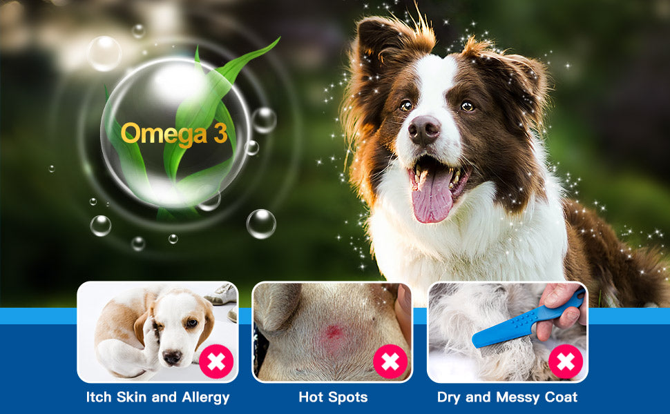 A dog's skin issues sometimes can be related to a lack of nutrients and weakened immunity. Extracted by marine algae, our omega 3 provides skin, coat and heart protection for your dog in a more sustainable way. We also add flaxseed, it is not only rich in ALA (alpha-linolenic acid) but also provides plentiful fibers, lignans and proteins. As a powerful antioxidant, It helps reduce inflammation, promote skin health, and regulate bowel movements. Combined with probiotics, it can effectively strengthen skin barriers and reduce allergies. They are also enriched with Vitamin E which can help nourish and soothe skin.